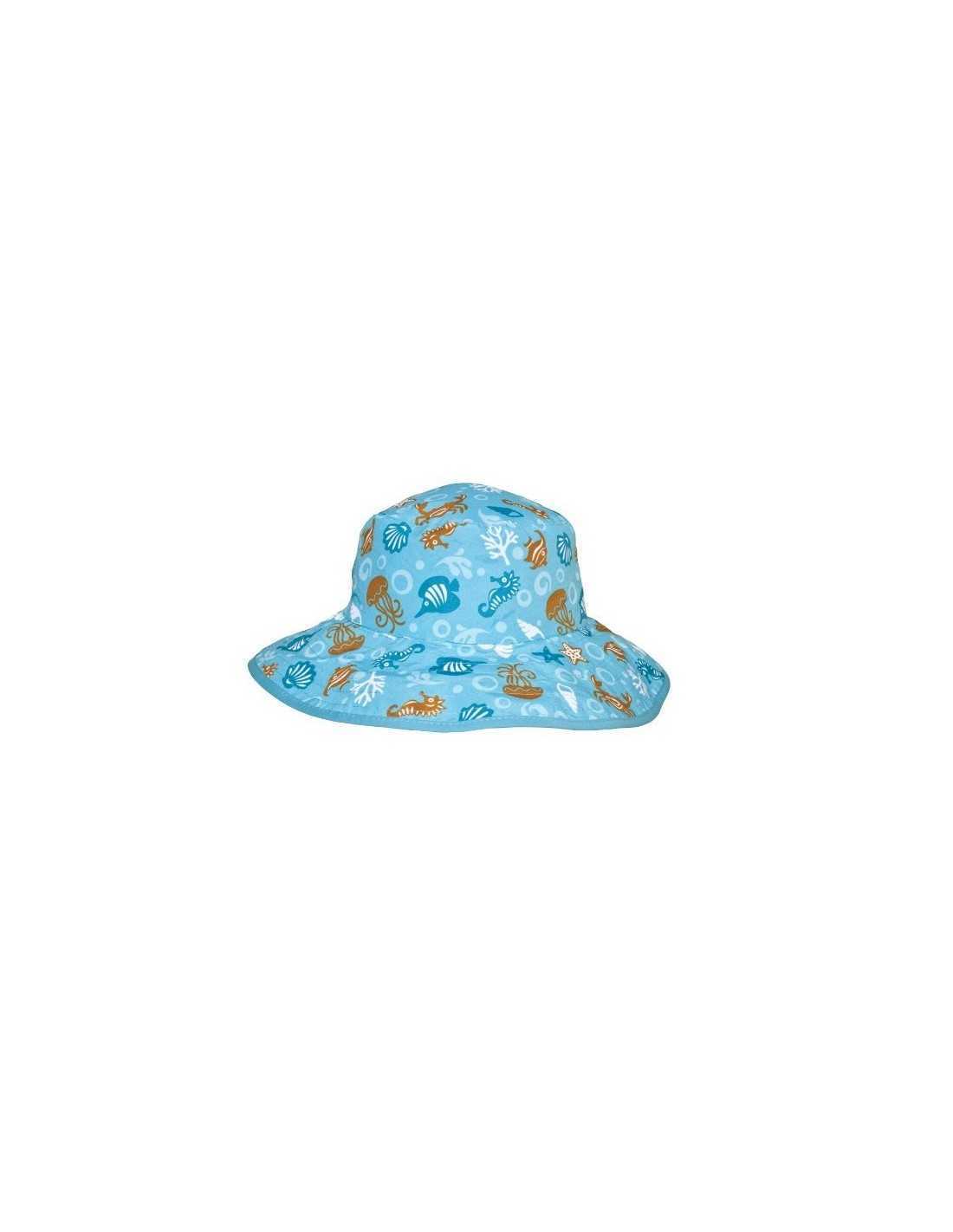 Această pălărie de protecție de la Baby Banz, cu un design atrăgător în nuanța Aqua Sea, este accesoriul perfect pentru a proteja micuții de razele puternice ale soarelui. Cu o protecție UPF 50, pălăria blochează radiatiile daunatoare ale soarelui, asigurând un confort maxim. Este reversibilă, oferind astfel două opțiuni de stil într-un singur produs.