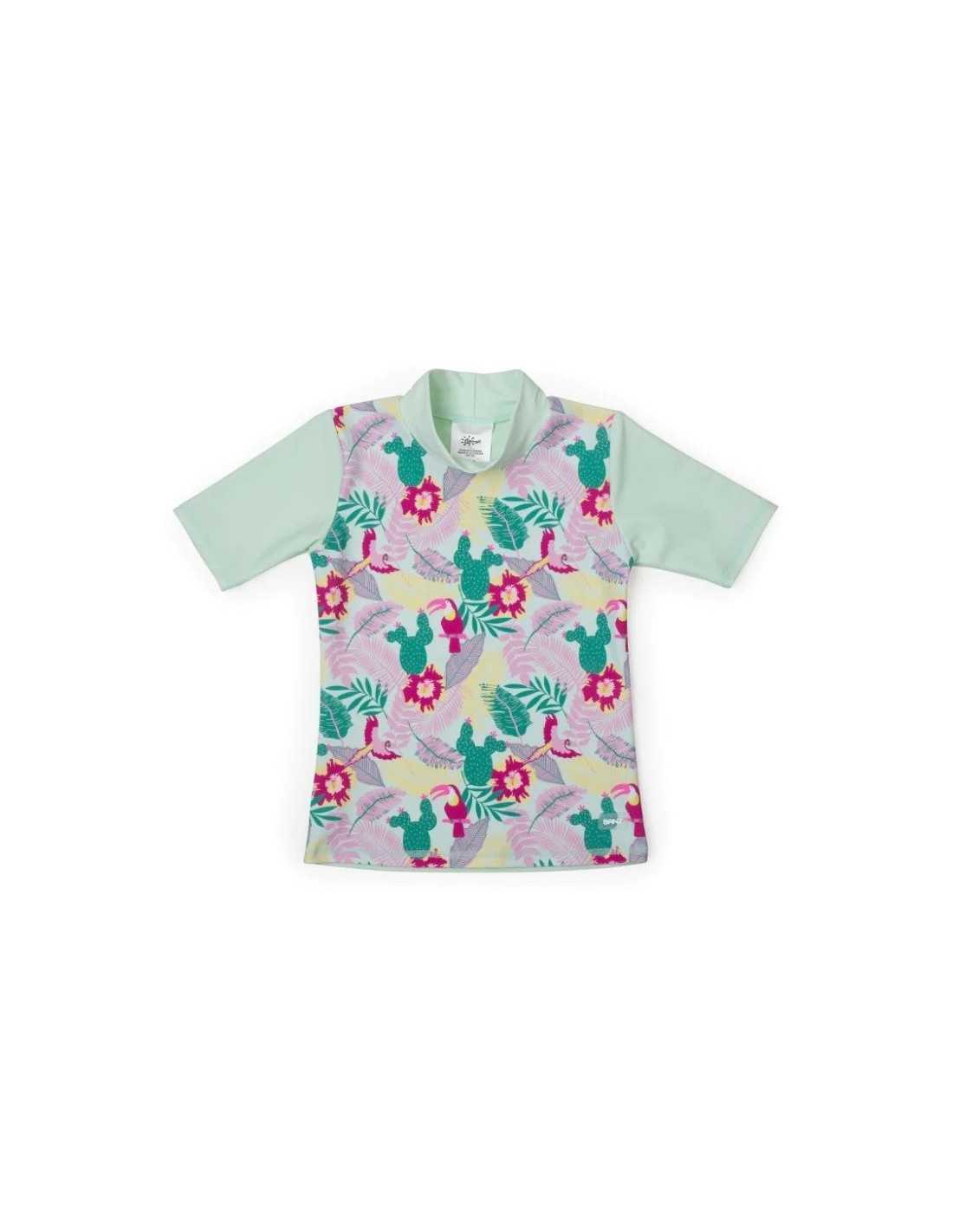 Tricoul Plaja-Soare-Piscină pentru copii cu mânecă scurtă Tropicana este alegerea perfectă pentru a-ți proteja micuțul în timp ce se bucură de aventurile de vară. Certificat pentru maxim de protecție UPF50, acest tricou oferă o barieră eficientă împotriva razelor ultraviolete dăunătoare, protejând pielea delicată a copilului tău.